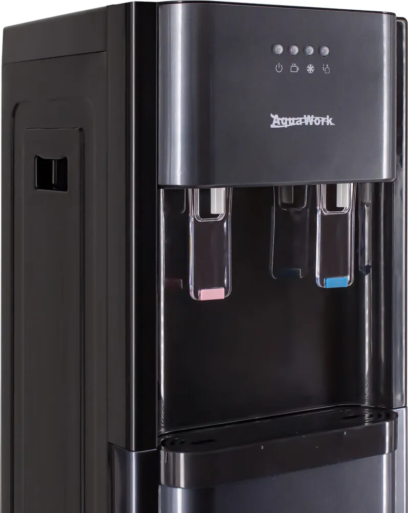 Напольный кулер Aqua Work J-42‑LDS — удобное решение для дома и офиса, сочетающее современные технологии с продуманной эргономикой. Ключевое преимущество модели — нижнее расположение бутыли, благодаря которому замена ёмкости становится быстрой, безопасной и не требует физических усилий. Гибкая силиконовая трубка обеспечивает стабильную подачу воды даже при минимальном её уровне.