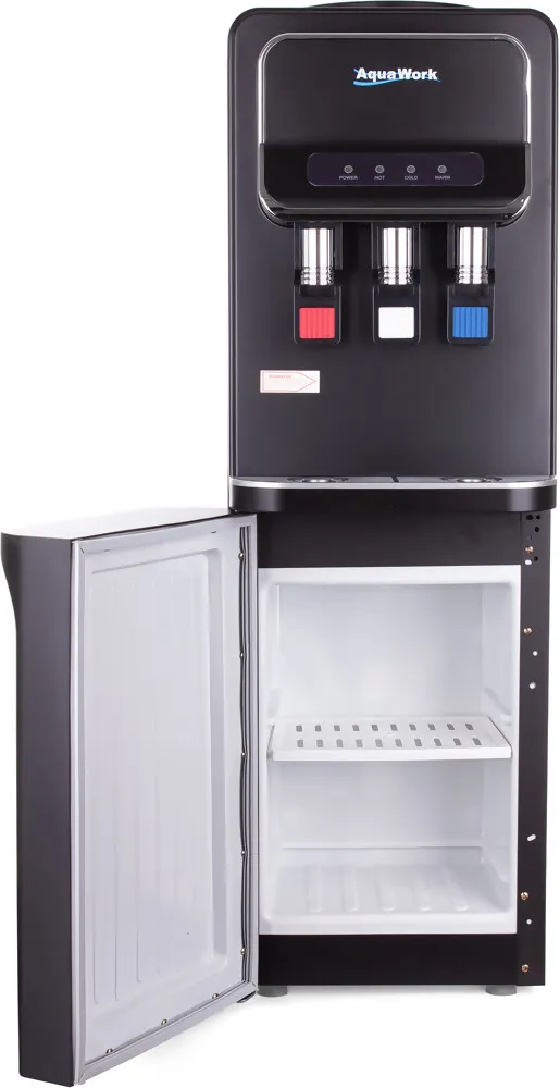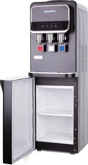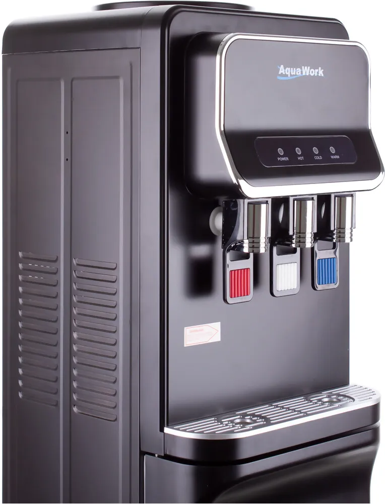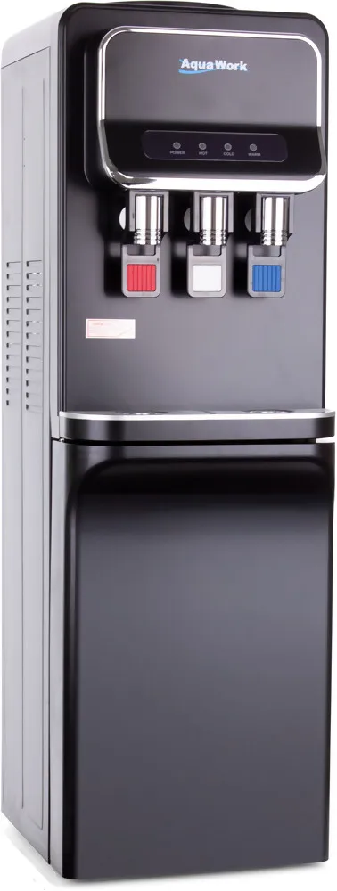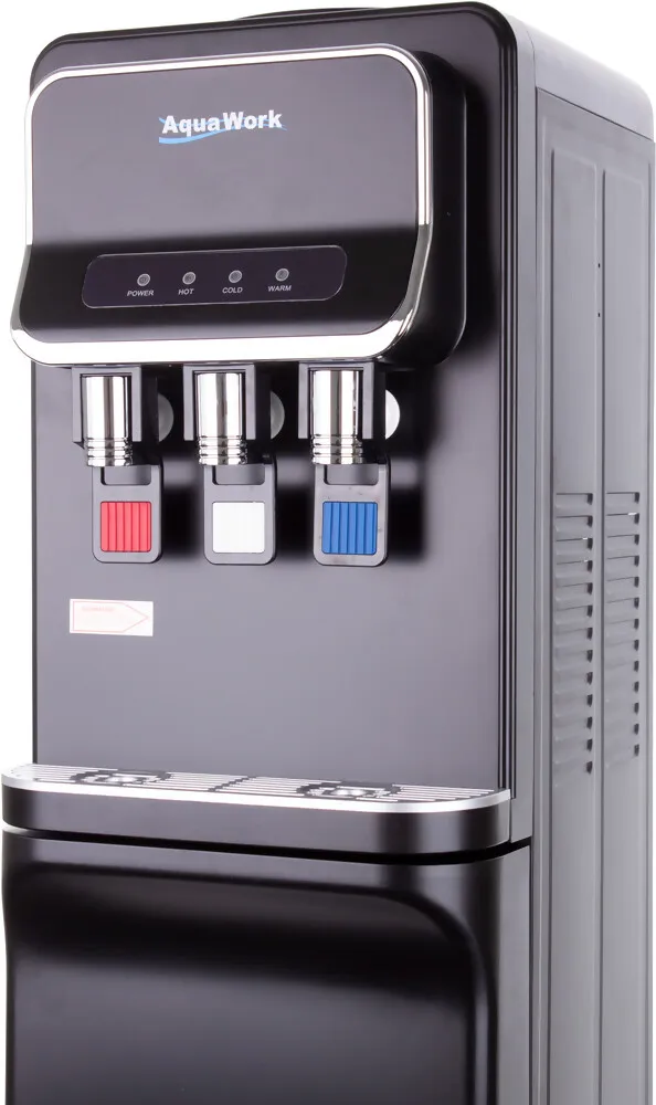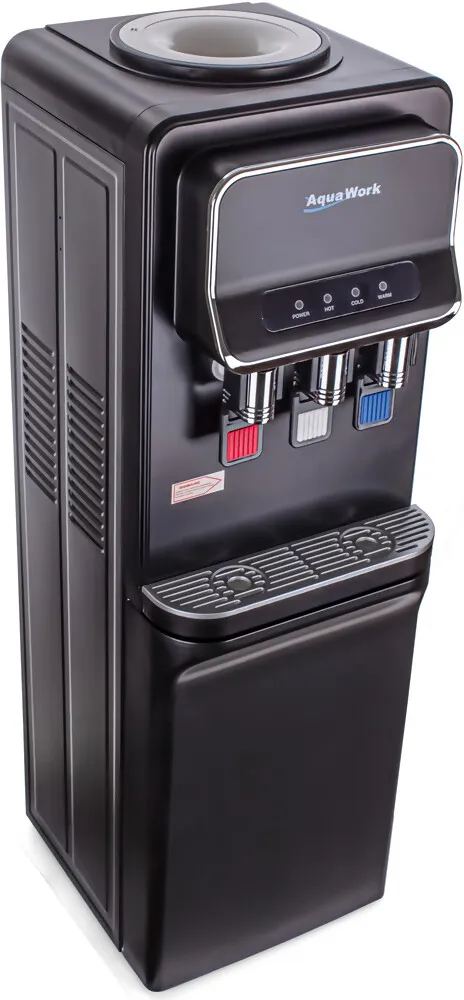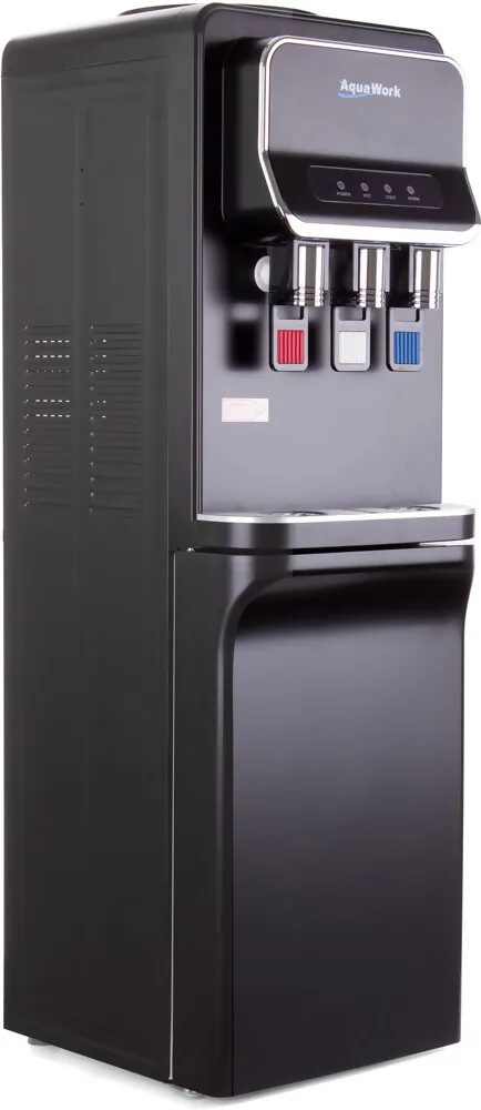 Напольный кулер Aqua Work V93‑W — удачное сочетание функциональности и современного дизайна. Чёрный матовый корпус из стали придаёт устройству элегантный вид, а продуманная конструкция делает его удобным для дома или офиса.