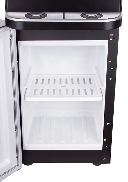 Устройство быстро готовит воду нужной температуры: мощный нагреватель (550 Вт) обеспечивает до 5 литров горячей воды в час (не ниже 90 °C), а электронная система охлаждения (75 Вт) даёт до 0,7 литра прохладной воды в час. Три краника типа «нажим кружкой» позволяют легко получить воду любой температуры — горячую, охлаждённую или комнатной.