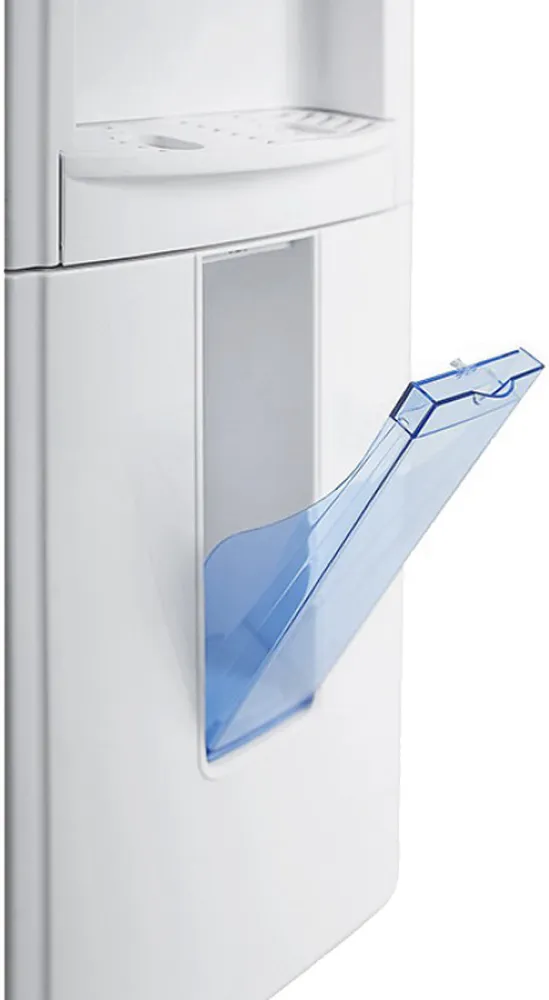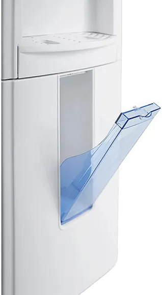 Кроме того, кулер оснащён откидным шкафчиком для хранения пластиковых стаканчиков, расположенным под кранами. Благодаря этому диспенсер всегда готов к использованию — стаканы под рукой, аккуратно спрятаны и защищены от пыли. Это делает HotFrost V118E идеальным решением для холлов, зон ожидания, конференц-залов и кухонь в офисах.