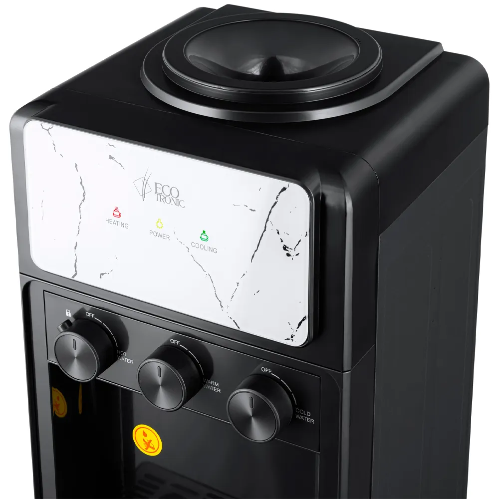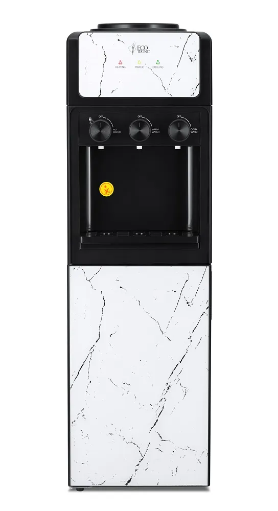 Напольный кулер Ecotronic K25LCE white Marble это сочетание современного дизайна, продуманной функциональности и максимального удобства. Его стильный корпус чёрного цвета с белой стеклянной вставкой под мрамор выглядит дорого и современно, легко вписываясь в интерьер дома, офиса или переговорной. Это не просто кулер это элемент интерьера, который подчёркивает вкус владельца.