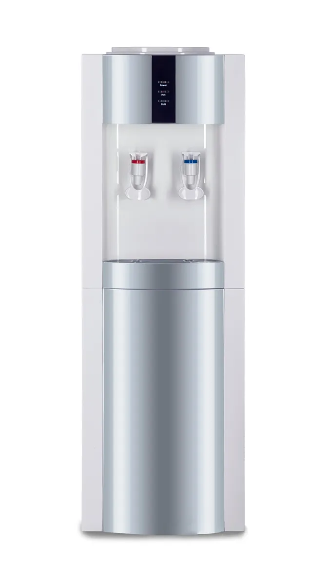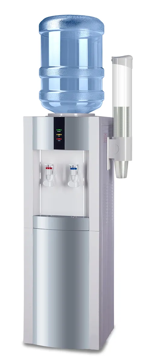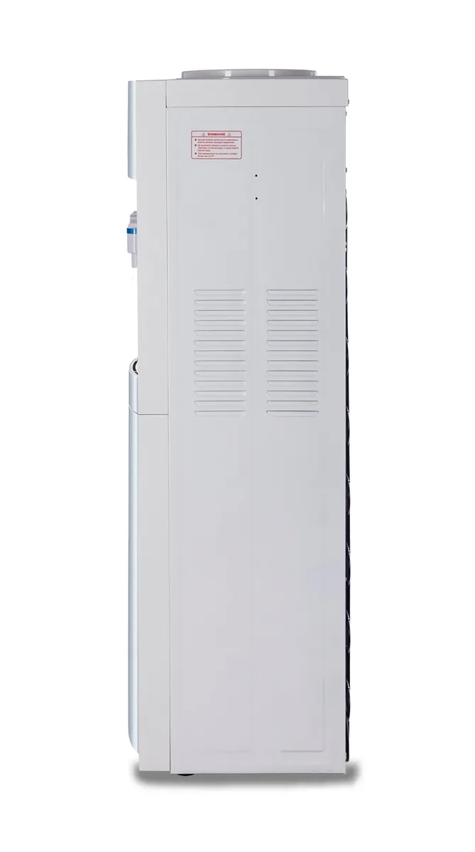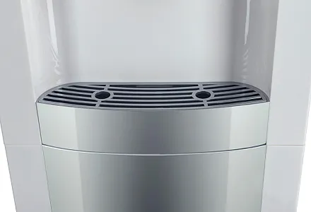 Пользоваться кулером удобно и просто. Вода заливается через верхнюю загрузку бутыли. Два крана типа «нажим кружкой» позволяют быстро получить горячую воду — достаточно поднести чашку и слегка нажать.