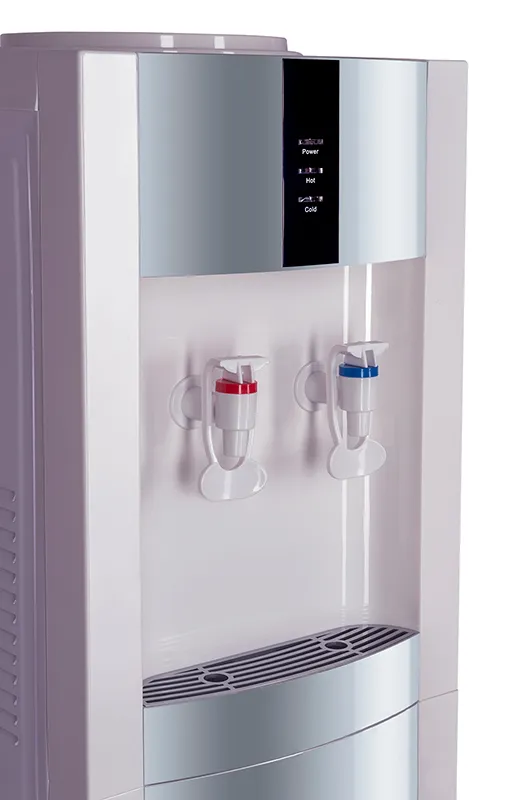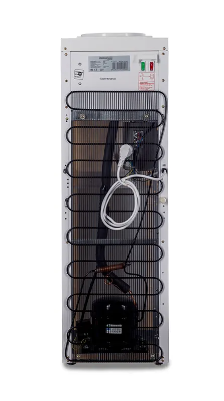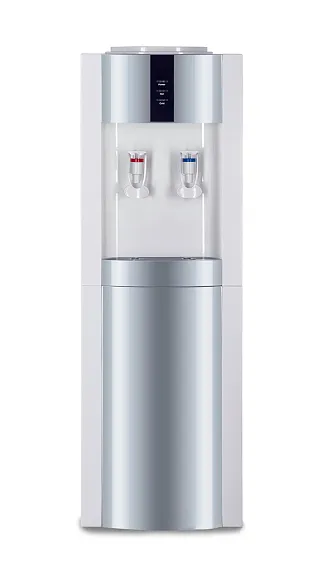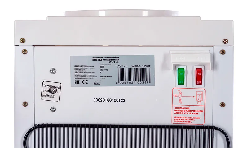 Кулер V21-L белый + серебристый. Бюджетный вариант классического кулера. Напольная модель белого цвета с серебристыми вставками. Компрессорное охлаждение. Тип кранов подачи воды - "Нажим кружкой".