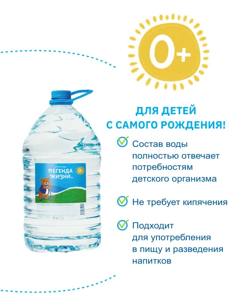 Позаботьтесь о здоровье малыша с питьевой водой «Вода детская Легенда жизни 0+» — разработана специально для детей с первых дней жизни и полностью соответствует потребностям детского организма.