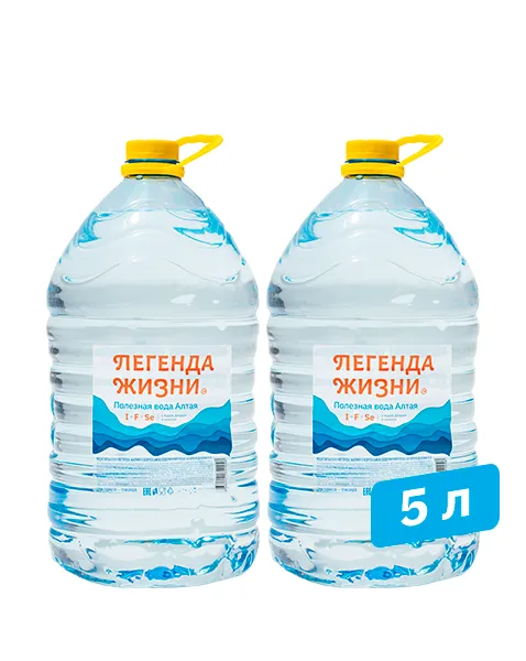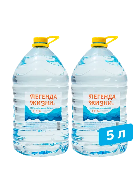 Теперь полезная вода всегда рядом! Легенда жизни объемом 5 литров с добавлением йода, фтора и селена будет незаменимым помощником на даче или в поездке.